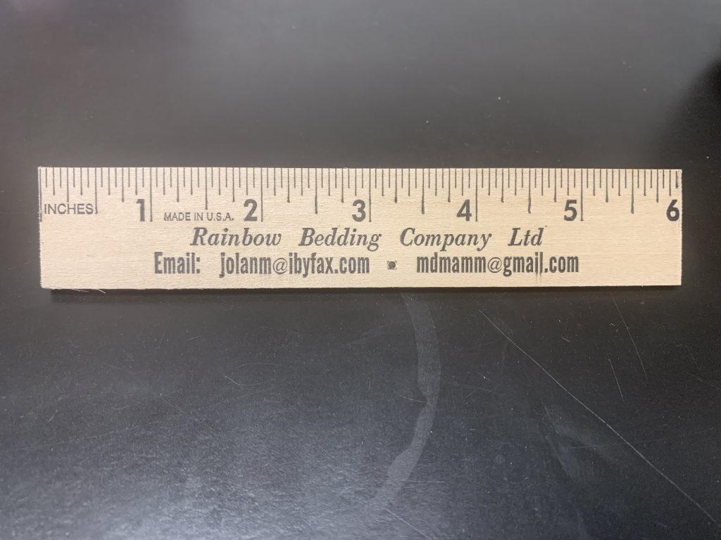 Step 4: Use the wooden ruler upright in the impressions of the mattress. Make sure the string is touching the ruler for an accurate read on how deep the impression is. Make sure the ruler is NOT in a button depression as this will give a false reading. Once placed in the proper position, take two photos where the measurement can clearly be seen.