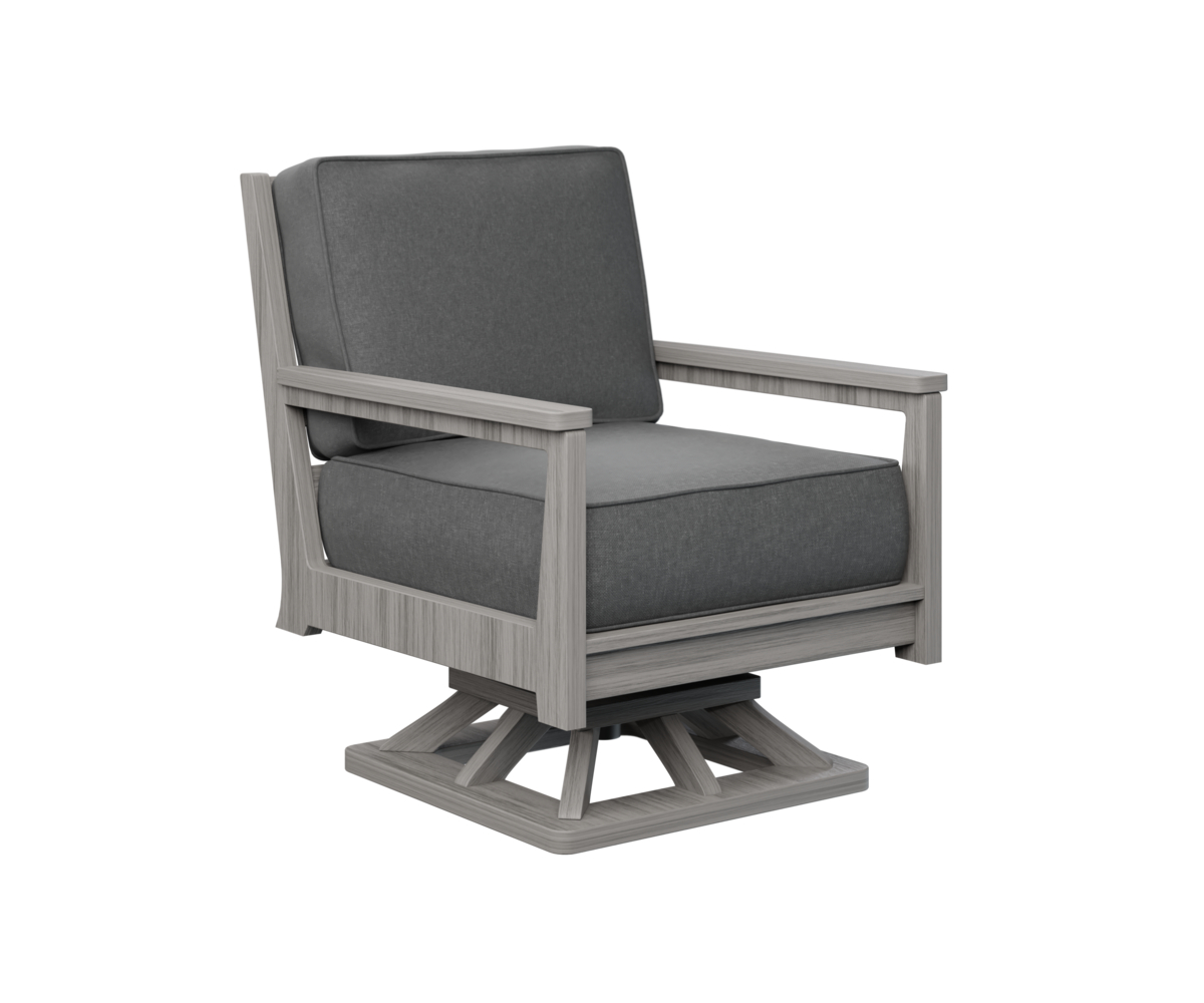 The Mayhew Swivel Rocker is perfect for your patio, deck, or poolside areas. It transforms outdoor spaces with thoughtfully designed proportions and smooth swiveling action. Traditional wooden rocking chairs require constant upkeep and refinishing. This rocker's unique construction provides all-weather durability with virtually zero maintenance. This design is ideal for year-round outdoor use. It features deep, comfortable seating and gentle rocking motion that makes relaxation effortless. The swivel rocker pairs beautifully with other pieces from the Mayhew collection. Invite friends over for barbecues or enjoy peaceful morning coffee outdoors. This chair delivers both style and functionality. Create a personal outdoor retreat with the Mayhew Collection.