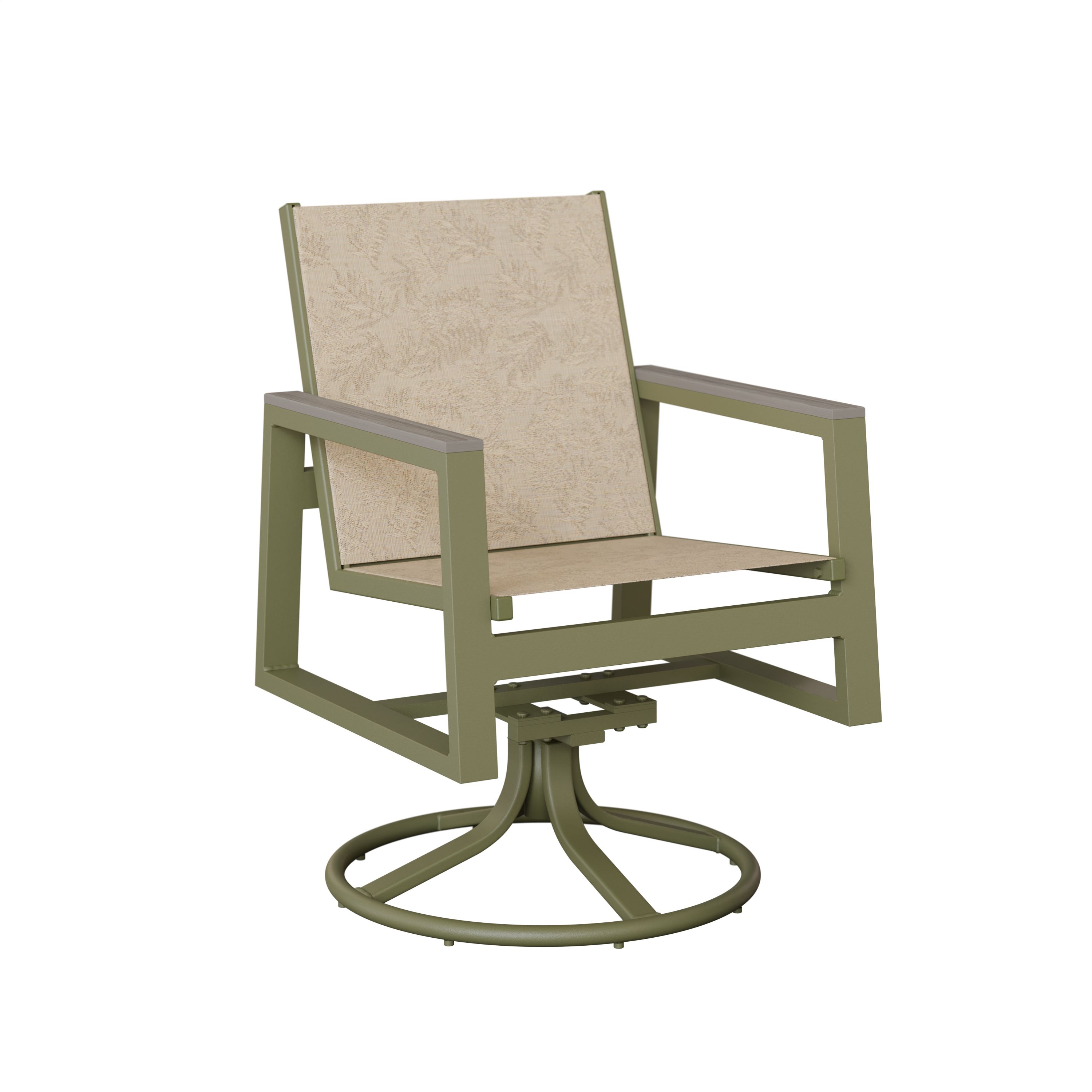 The Vida Aluminum+Sling Swivel Rocker Dining Chair is perfect for your patio, deck, or outdoor dining areas. It transforms outdoor spaces with thoughtfully designed proportions and dynamic comfort. Traditional wooden chairs require constant upkeep and refinishing. This dining chair's unique construction provides all-weather durability with virtually zero maintenance. This design is ideal for year-round outdoor use. It features a smooth swivel-and-rock motion that enhances dining comfort and encourages relaxed conversation around the table. The dining chair pairs beautifully with other pieces from the Vida Aluminum + Sling Collection. Invite friends over for alfresco dinners or enjoy peaceful morning coffee outdoors. This swivel rocker dining chair delivers both style and functionality. Create a personal outdoor retreat with the Vida Aluminum + Sling Collection.