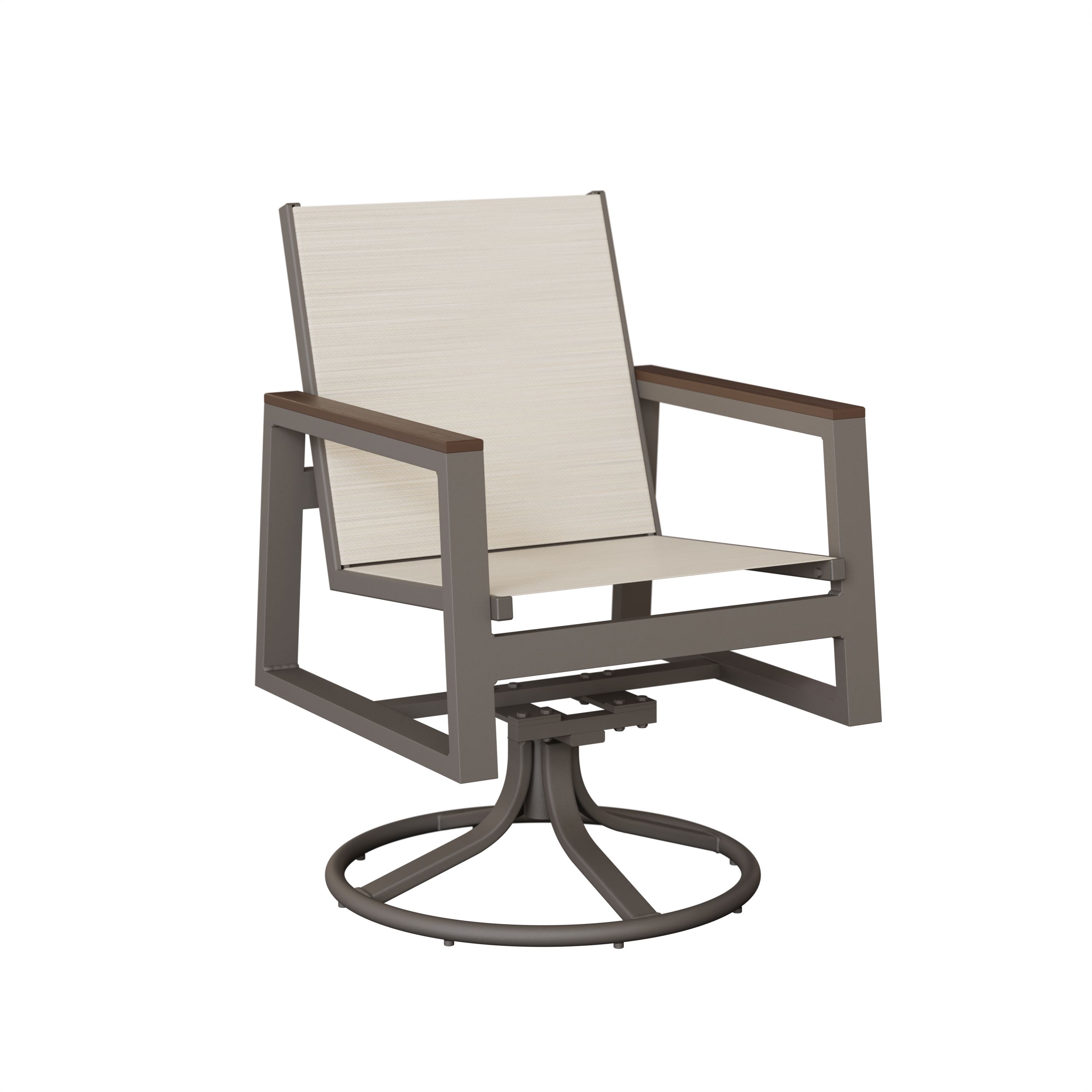 - Want a high-back version? Try the Vida High Back Aluminum+Sling Swivel Rocker Dining Chair. It offers the same swivel-and-rock functionality with added back support.